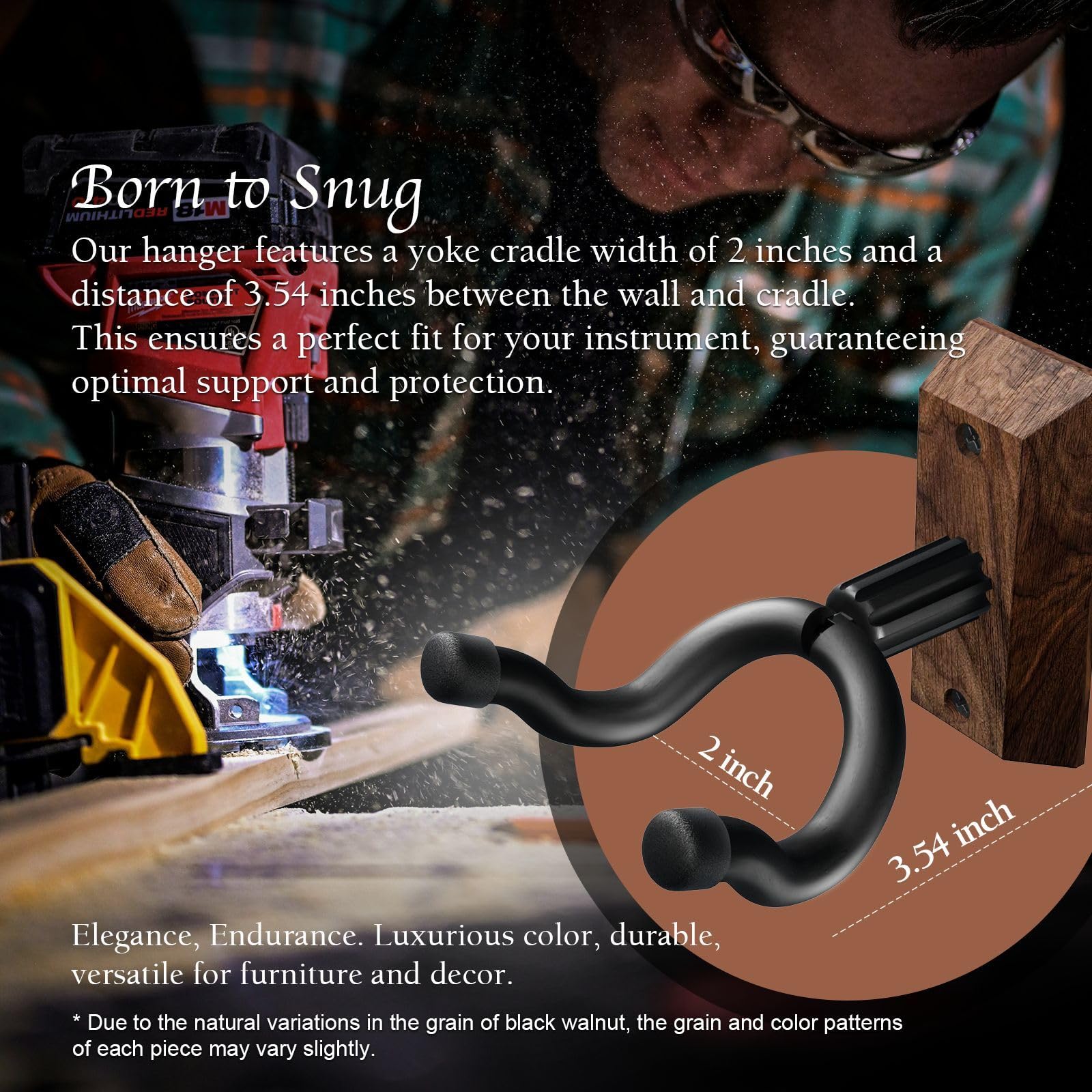 - ๐๐น๐ฒ๐ด๐ฎ๐ป๐ ๐๐น๐ฎ๐ฐ๐ธ ๐ช๐ฎ๐น๐ป๐๐ ๐๐ฎ๐ฟ๐ฑ๐๐ผ๐ผ๐ฑ ๐๐ถ๐ป๐ถ๐๐ต: ClefArc 2 Pack guitar hanger wall mount showcases the deep, rich color of black walnut, with each piece featuring unique grain patterns that make every hanger truly one of a kind. Its natural elegance seamlessly complements any dรฉcor, turning your guitar into a striking display piece.
