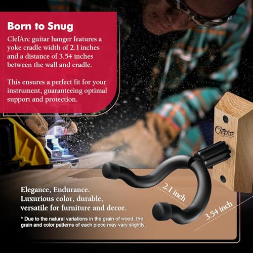 - 𝗘𝗻𝗵𝗮𝗻𝗰𝗲𝗱 𝗦𝘁𝗮𝗯𝗶𝗹𝗶𝘁𝘆 𝘄𝗶𝘁𝗵 𝗥𝗲𝗶𝗻𝗳𝗼𝗿𝗰𝗲𝗱 𝗗𝗲𝘀𝗶𝗴𝗻: ClefArc guitar wall hangers feature reinforced construction to minimize the risk of twists or slides, providing dependable stability for your guitars.
